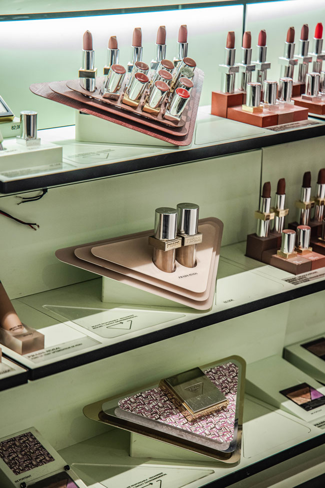En collaboration avec les équipes PRADA, nous avons développé, fabriqué et installé cette série de gondoles destinée aux magasins Sephora.