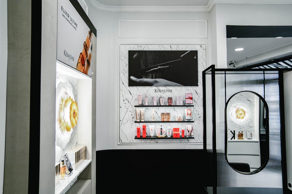 Nos équipes ont pu assurer la fabrication et le déploiement du concept de “Brand Iconization”, notamment à travers les différentes représentations de l’emblématique “K” de Kérastase.